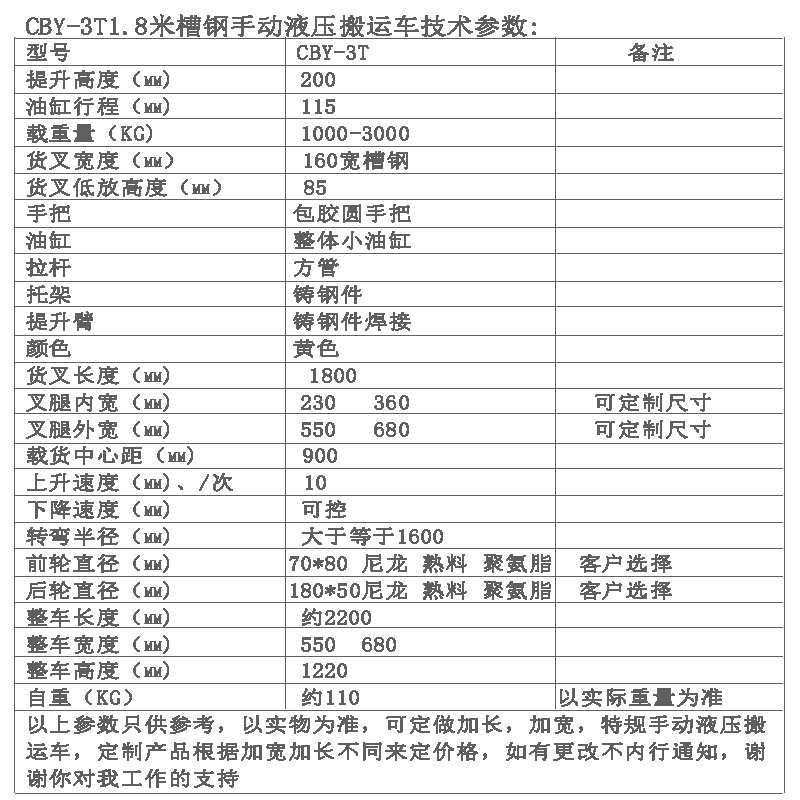 3吨1.8米2米1.5米槽钢搬运车 加长手动液压叉车 手推托盘车 拖车